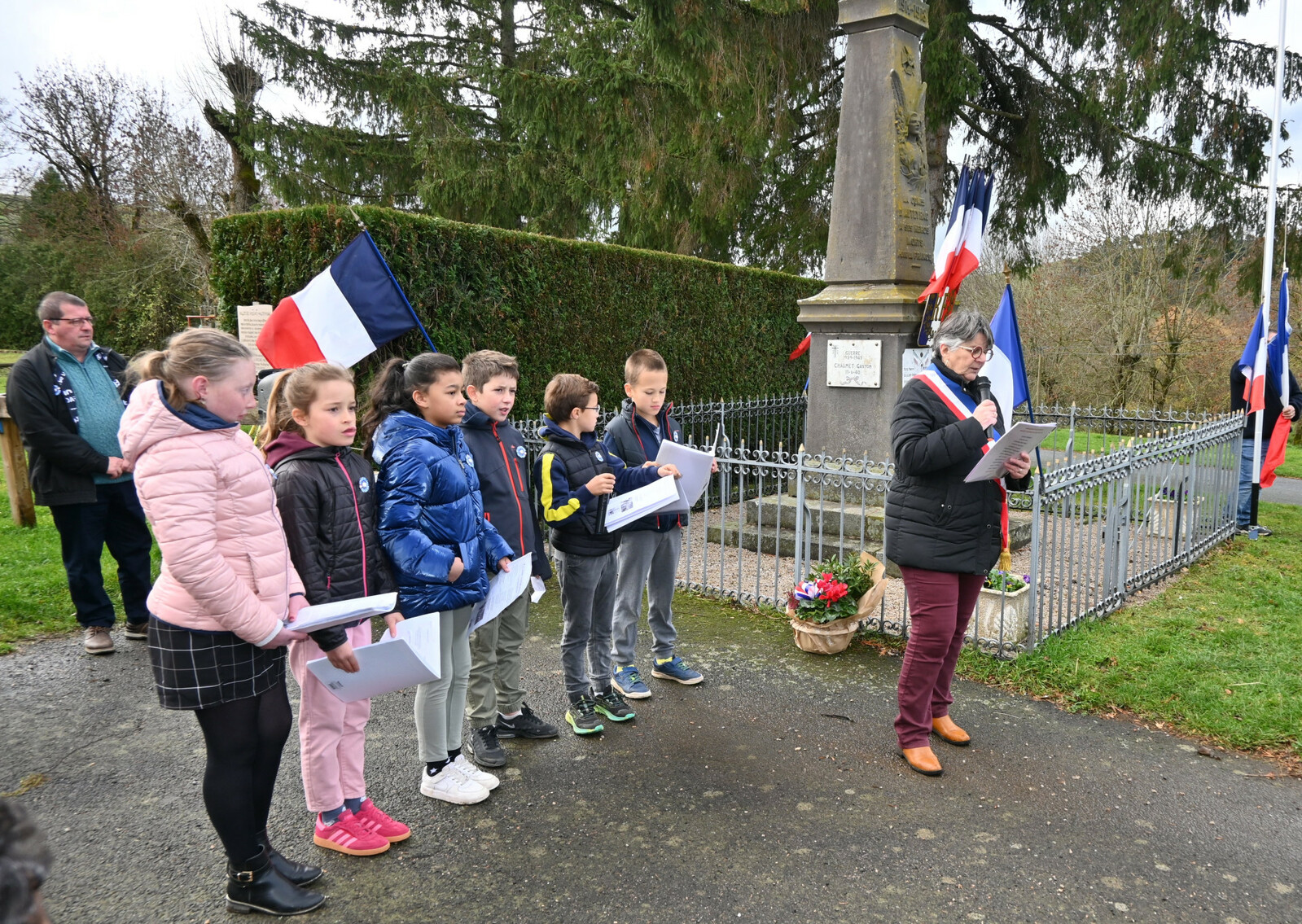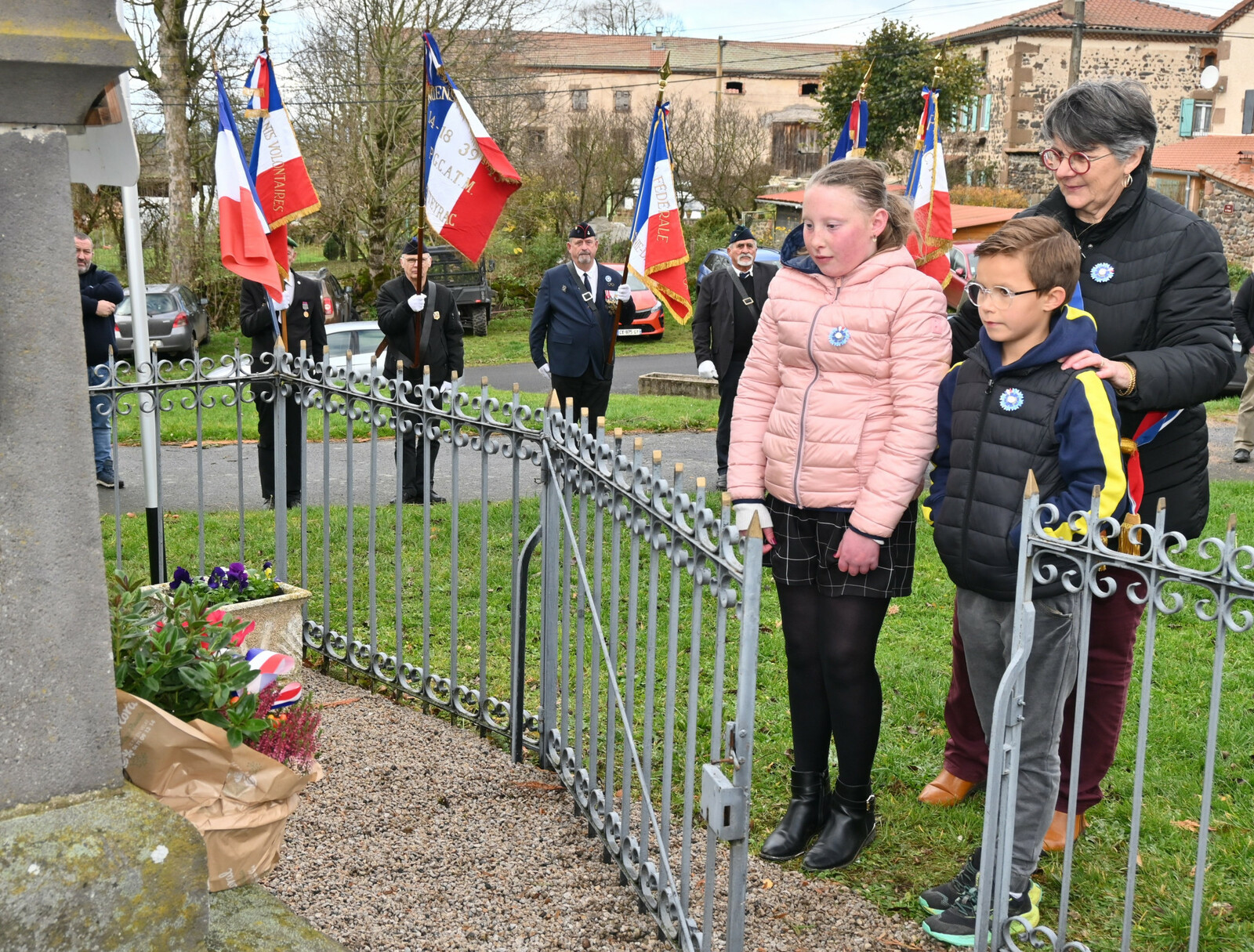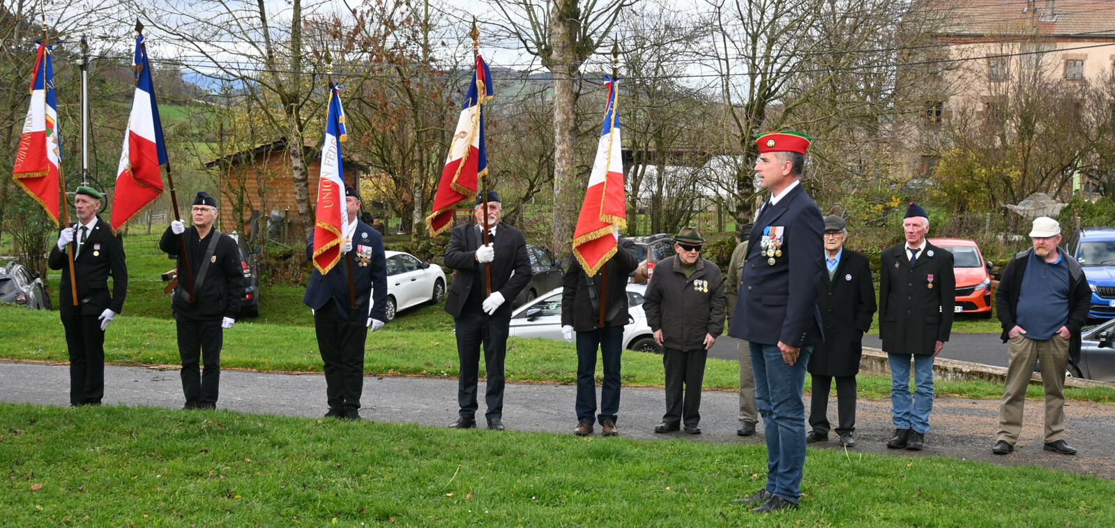 Le dimanche 16 novembre 2025, a eu lieu la commémoration du 107e anniversaire du 11 novembre à Auteyrac avec la participation de Michèle MALFANT maire de Vissac Auteyrac et Karine CROS maire de STE Eugénie de Villeneuve, des porte-drapeaux, Loïc MALFANT lieutenant-colonel et secrétaire des anciens combattants de Vissac Auteyrac et de Ste Eugénie de Villeneuve ainsi que les élèves CM1, CM2 du RPI de Lachaud. Après la levée des couleurs et la marseillaise, les enfants ont lu un poème 14-18 Folie meurtrière de Jacques Hubert FROUGIER et ont déposé la gerbe au monument aux morts. La fanfare de ST Jean de Nay a animé la cérémonie et terminé celle-ci par une aubade. Le conseil municipal a invité tous les participants à cette cérémonie à partager le verre de l’amitié. A partie de 13h00, les anciens combattants se sont retrouvés pour leur repas annuel à STE Eugénie de Villeneuve avec les maires des deux communes